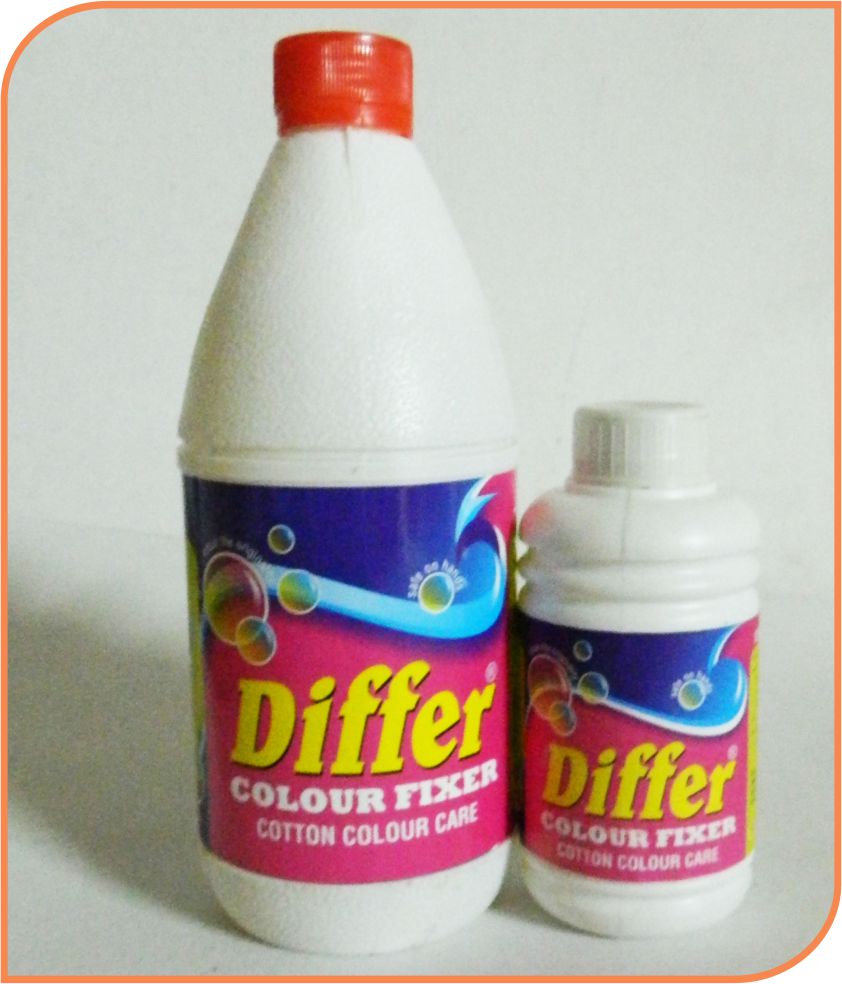 Differ Colour Fixer a unique product for Cotton fabric colour care. Useful for: * Protect & reduce fading tendency of coloured fabrics during washing. * Retain their colour brilliance. * Maintain colour integrity of Fabrics. * Rated excellence in Colour Fixation. VERY EASY TO USE