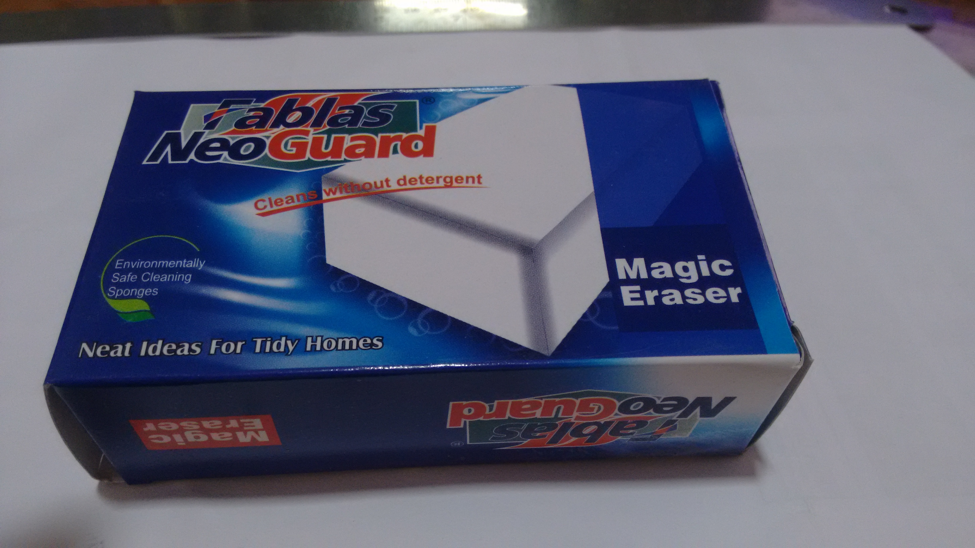 Magic Eraser Sponge does not required Soap or Detergent to remove dirt & Stains. Highly abrasive require only water & less force for cleaning. Just moist the Magic Eraser Sponge with little water & rub it gently across the stubborn stain. It's very helpful for every home.
